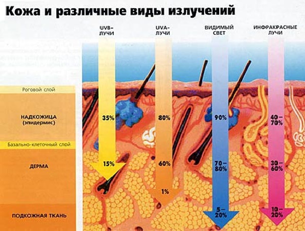 - регулярное воздействие УФ-лучей (естественных или искусственных). В большинстве случаев при воздействии происходит не только прямое повреждение кожи, но и воздействие на ДНК, происходит мутация, а это идет к вторичным мутациям липидов мембран и основных белковых молекул – поражаются, в основном, базальные эпителиальные клетки;
