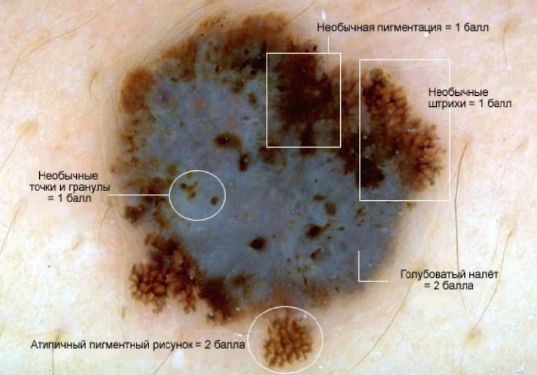 - проводится эпилюминсцентная микроскопия аномального участка кожи с помощью дерматоскопа и иммерсионной среды;