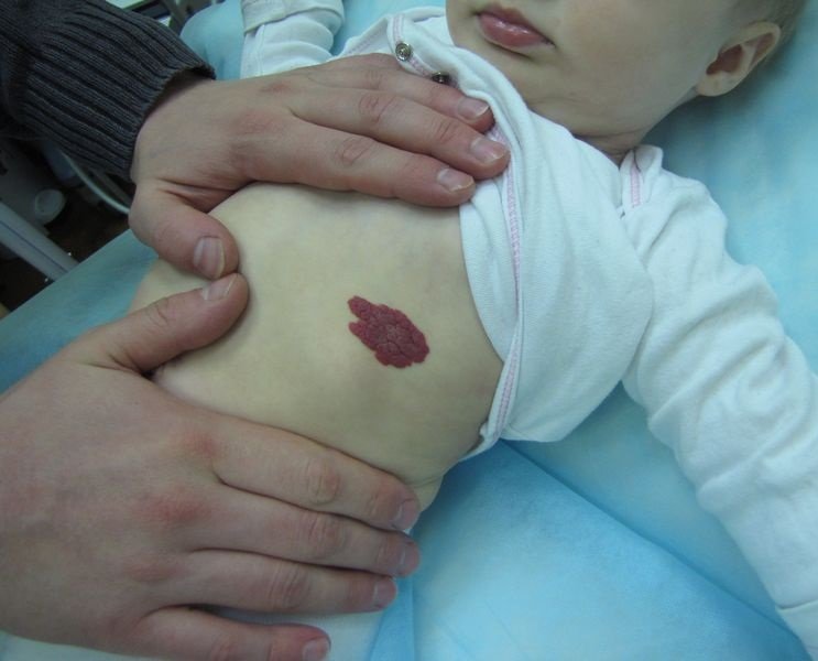 Как выглядит гемангиома? Гемангиозные опухоли могут быть выпуклыми (с припухлостью над кожной поверхностью) либо плоскими пятнами. Их размер колеблется в диапазоне от 0,1 до пятнадцати сантиметров. Температура при гемангиоме имеет свои особенности — место расположения опухоли является горячим по сравнению с остальными частями тела.