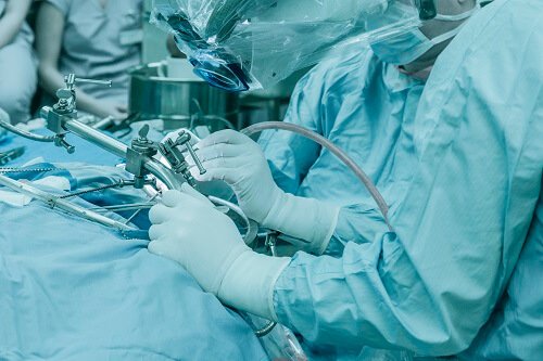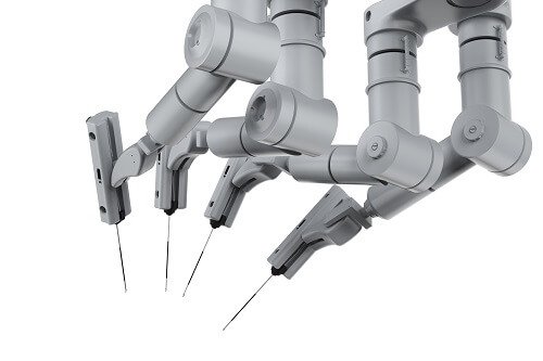 - Робот-ассистированная резекция – если опухоль имеет нечеткие границы, прорастает в связки, нервы или сосуды, удаление патоочага проводится с помощью робота-ассистента Da Vinci. Эта высокотехнологичная установка оснащена несколькими многофункциональными манипуляторами, системой видеонавигации и контрольным блоком. Изображение операционного поля выводится на дисплей контрольной панели. Врач оценивает положение опухоли, состояние окружающих тканей и перемещает соответствующие джойстики на контрольной панели. Манипуляторы робота с ювелирной точностью иссекают патологические ткани, полностью сохраняя при этом целостность сосудов, нервов и мышечно-связочного аппарата.