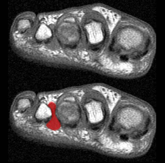 Лечением этой болезни занимаются специалисты узкой направленности: врач-ортопед, подолог – специалист по лечению поражения стоп, травматолог, ревматолог, невропатолог и сосудистый хирург. Доктор проводит осмотр путем пальпации болезненных участков и для уточнения этиологии заболевания обычно назначает прохождение магнитно-резонансной томографии и рентгена. Однако, с учетом того, невринома представляет собой соединение из мягких тканей, диагностика с помощью указных методов является очень низкой по своей эффективности, но, при этом позволяет исключить наличие других схожих с невромой болезней.