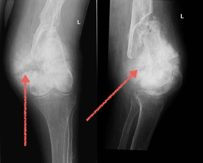 Если же новообразование локализовалось на нижних конечностях, особенно на коленных суставах, человек, практически не может согнуть ногу, передвигается хромая. При ощупывании области поражения, человек ощущает сильную боль.