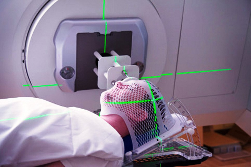 Радиотерапия — лечение проводится, когда новообразование нельзя удалить скальпелем. На опухоль прицельно направляются гамма-лучи, что позволяет уменьшить плохое воздействие на здоровые ткани. Пациент проходит терапию в специальной маске из плексигласа, которая четко фиксирует голову и помогает добиться точной направленности лучей. Противопоказаний для этого метода нет.