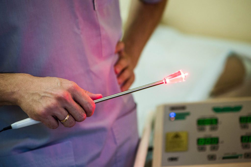 - фотодинамическую терапию с введением лекарства и использованием лазерного луча, уничтожающего аномальные клетки;