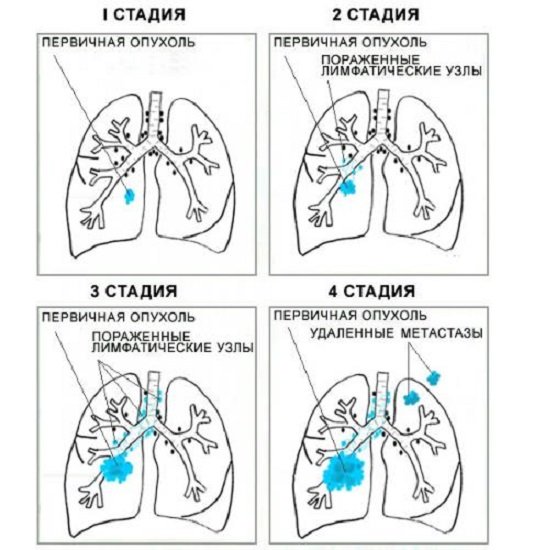 Терминальная стадия рака легких характеризуется наличием опухоли внушительных размеров, вышедшей за пределы легкого и распространившей вторичные очаги – метастазы по всему организму. Лечению рак уже не поддается и пациенту остается жить считанные месяцы.